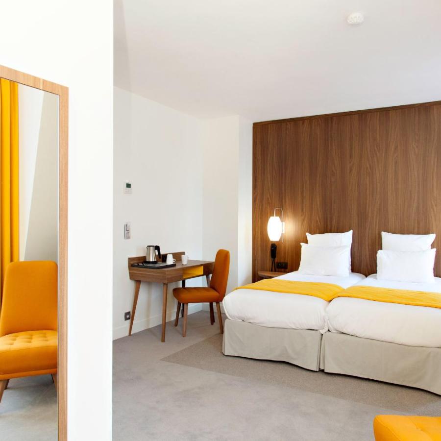 Hier finden Sie eine angenehme Ruhe, die im Kontrast zum oft hektischen Rhythmus der Pariser Tage steht. Die Innenräume, ohne Übertreibung, eignen sich gut für eine komfortable Auszeit in einer Umgebung, die Ihren Aufenthalt erleichtert.