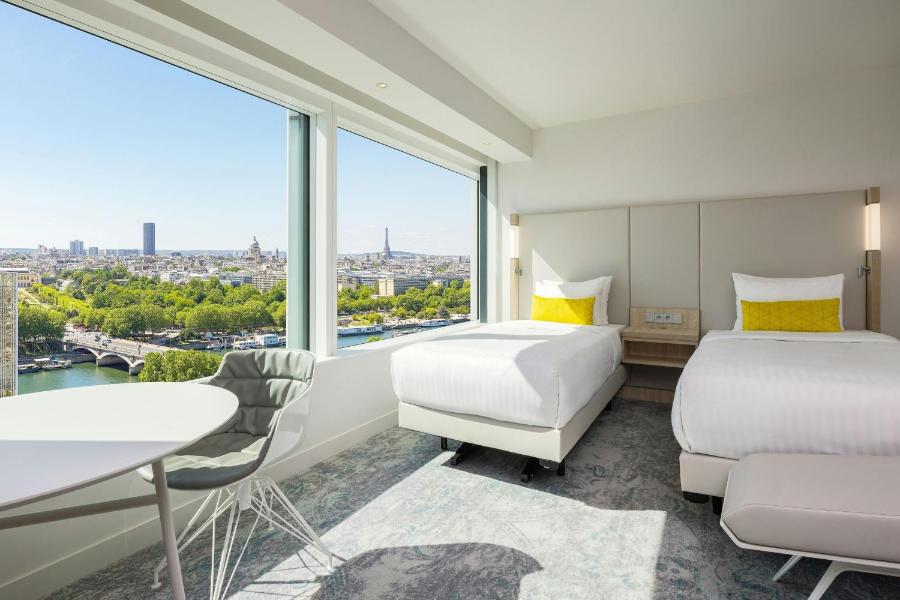 - Nous avions réservé une chambre au 12e étage et le panorama sur les toits de Paris nous a conquis dès l'arrivée. On distingue la Tour Eiffel au loin, et le spectacle de ses scintillements chaque heure le soir reste un souvenir marquant du séjour. Le lit était vraiment confortable et la chambre d'une propreté impeccable.