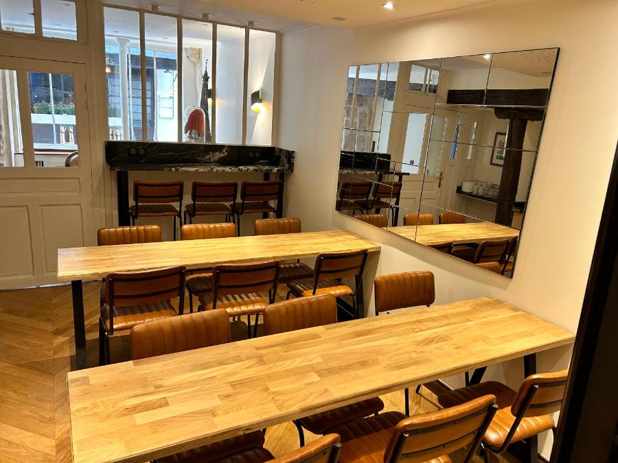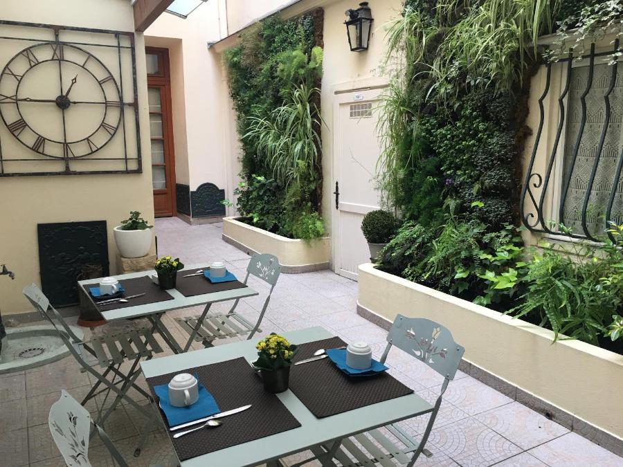 Am Morgen erwartet die Besucher ein Frühstücksbuffet in einem schlicht eingerichteten Raum. Wenn das Wetter es zulässt, kann das Frühstück im Innenhof eingenommen werden, abseits des städtischen Trubels. Dieser Außenbereich, der in diesem Teil von Paris selten ist, verleiht dem Aufenthalt eine wertvolle Dimension, wie eine Atempause im dichten Gewebe der Stadt.