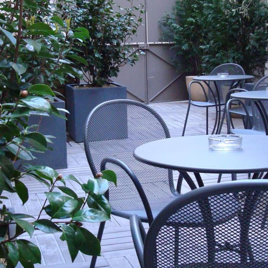 Der Innenhof, zugleich friedlich und einladend, bietet einen angenehmen Raum zum Lesen, Plaudern oder einfach zum Genießen eines ruhigen Moments. Er wird auch von Rauchern geschätzt, die hier einen abgeschiedenen Platz finden, ohne die anderen Gäste des vollständig rauchfreien Hauses zu stören.