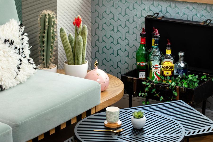 Die Dekoration spielt mit subtilen Kontrasten: grafische Muster, Texturspiele, Leuchten in Vogelform oder Hinweise auf den Eiffelturm, die immer präsent, aber nie aufdringlich sind. Nichts ist starr, alles scheint so gestaltet, dass es persönliche Erinnerungen weckt. Ein Spiegel, eine Schneekugel, eine gezeichnete Linie an der Wand erinnern daran, dass die Reise hier auch eine innere Erfahrung ist.