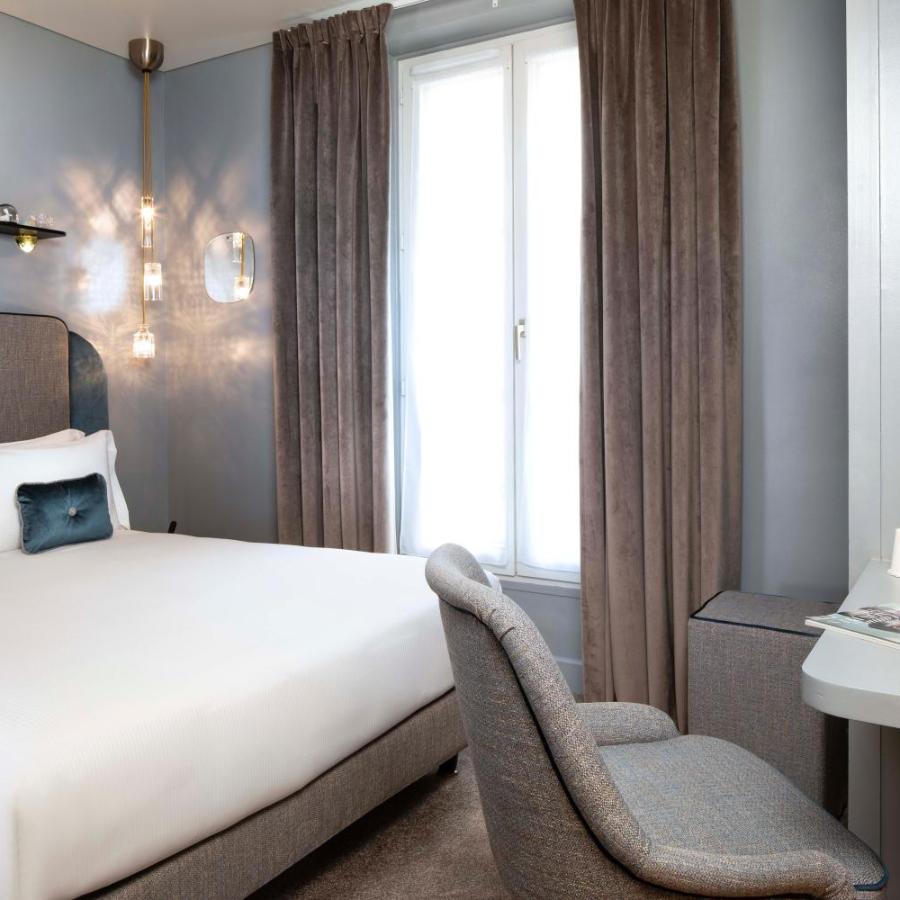 Die 33 Zimmer, die sich über mehrere Etagen verteilen, setzen diese gedämpfte Atmosphäre fort. Sie folgen denselben Prinzipien von Schlichtheit und Komfort, mit klaren Linien, weichen Materialien und beruhigenden Farbtönen. Die hochwertige Bettwäsche sorgt für erholsame Nächte, selbst nach langen Tagen in den lebhaften Straßen von Paris. Einige Zimmer verfügen über eine private Terrasse, die zum Innenhof hin geöffnet ist und einen ruhigen Moment in diskreter Umgebung ermöglicht.