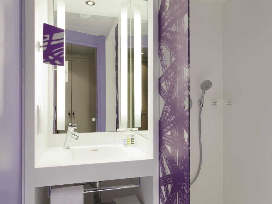 Die Zimmer sind schlicht dekoriert, wobei das Thema des Eiffelturms angedeutet, aber nie aufdringlich ist. Der Raum ist gut gestaltet, die Betten sind komfortabel, und jedes Element scheint darauf ausgelegt zu sein, den Rhythmus des Aufenthalts zu begleiten, sei es für Besichtigungen, Meetings oder Momente der Ruhe. Klimaanlage, zuverlässiges WLAN und funktionale Ausstattung runden das Gesamtpaket effizient ab.