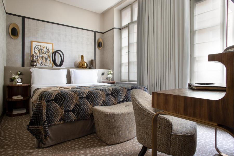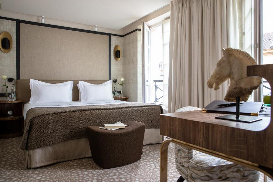 Behind the discreet façade of a building on Rue Saint-Sulpice, a confidential world opens up to you. Far from the Parisian hustle and bustle, you enter a space designed as a private address, an intimate retreat in the heart of the Left Bank. Hôtel Esprit Saint Germain welcomes you in a serene atmosphere, blending discreet elegance with the French art of living, just steps away from the Luxembourg Gardens and the literary buzz of the Saint-Germain-des-Prés neighborhood.
