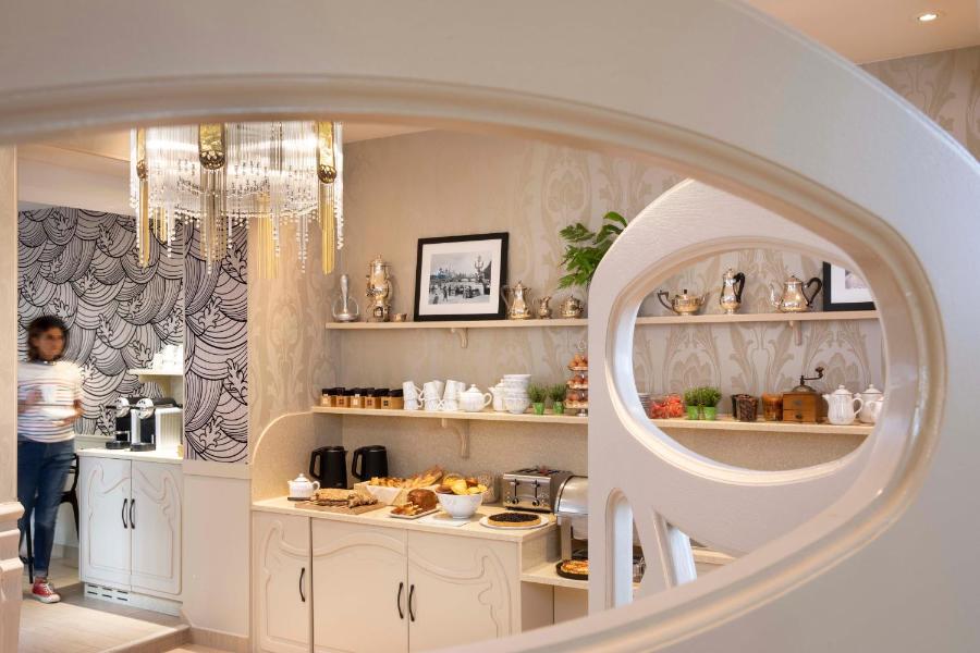 You find yourself in an authentic townhouse dating back to the 19th century, a Haussmannian building that carries within it the history of the capital. Although the establishment is a family-run hotel appreciated for its ambiance, it has managed to retain a discreet atmosphere that appeals to all types of guests, from business travelers to academics visiting the Sorbonne, as well as those seeking rest. This unique atmosphere, which charmed personalities such as Barbara and Klaus Kinski in the past, still endures today.