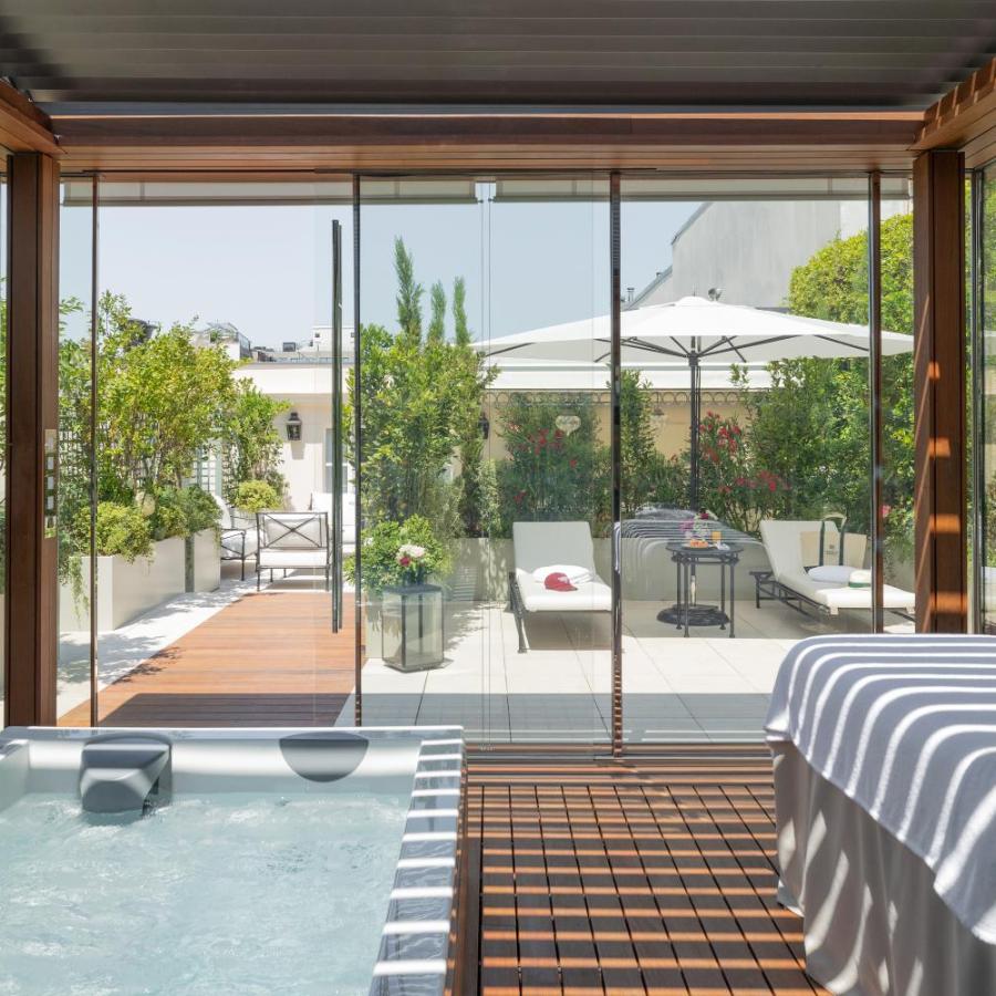 - The rooftop pool offers a suspended moment with an unparalleled view of the Parisian rooftops