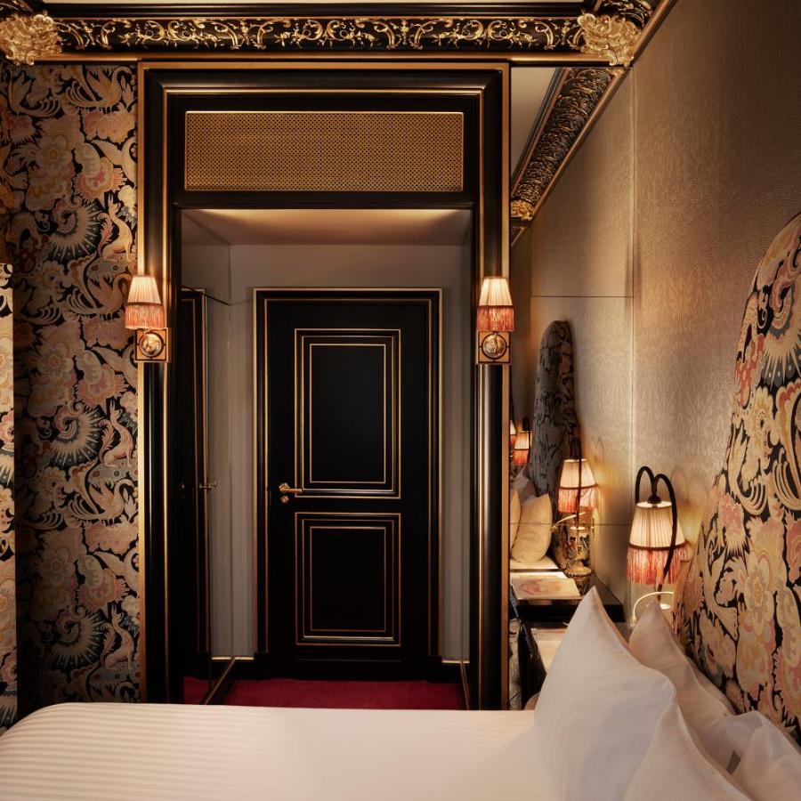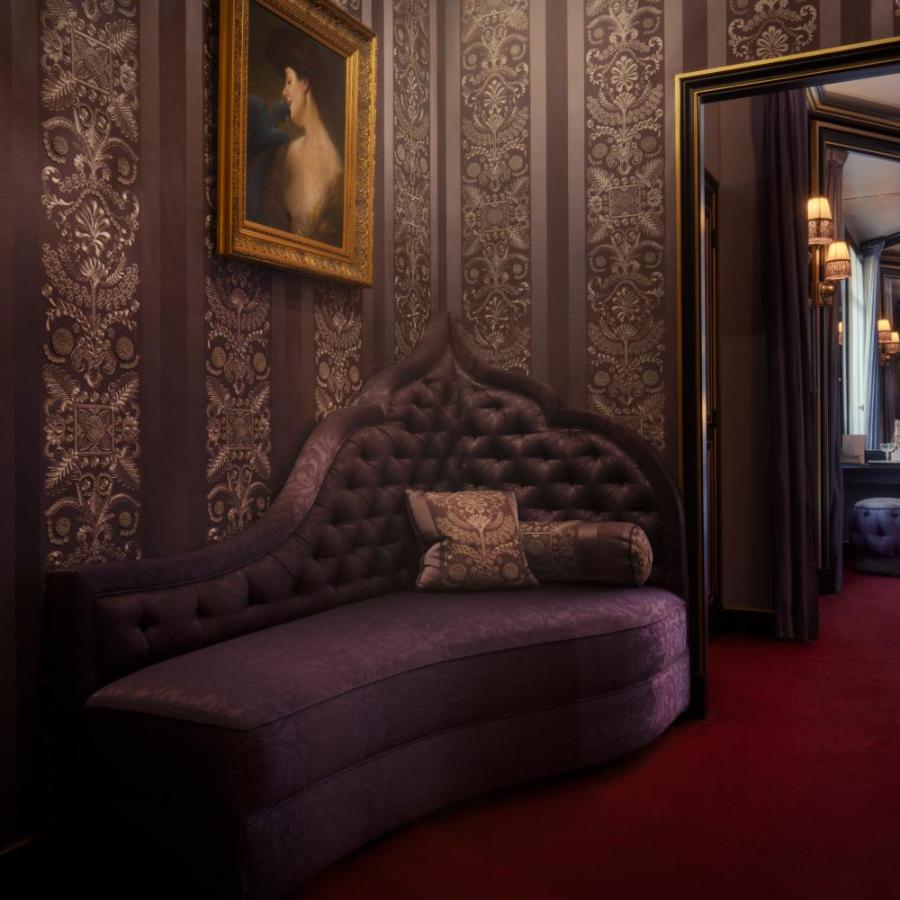 Each of the twenty rooms and suites pays tribute to a mythical figure of the Parisian demi-monde, embodying by turns whimsical elegance, mysterious exoticism, or voluptuous softness. Here, you will find the charm of bygone decor, enhanced by rare fabrics, meticulously chosen art objects, and a palette of rich and captivating colors. Every room immerses you in a reimagined era, without nostalgia but with passion.