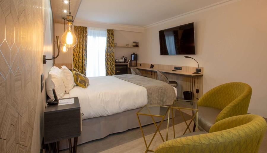Soundproofing contributes to the tranquil atmosphere, as does adjustable air conditioning, present in all rooms. The flat-screen TV provides access to satellite channels and Canal+, while fast and unlimited Wi-Fi is available free of charge. A minibar, individual safe, and courtesy tray complete the offering.