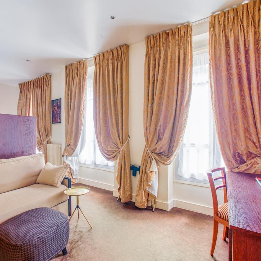 The interior ambiance combines discreet classicism with contemporary touches. The materials, colors, and furniture have been chosen to create a warm atmosphere, conducive to relaxation after a day of sightseeing or business appointments. The soundproofing of the rooms contributes to the overall tranquility of the hotel, enhancing the sense of a cozy retreat.