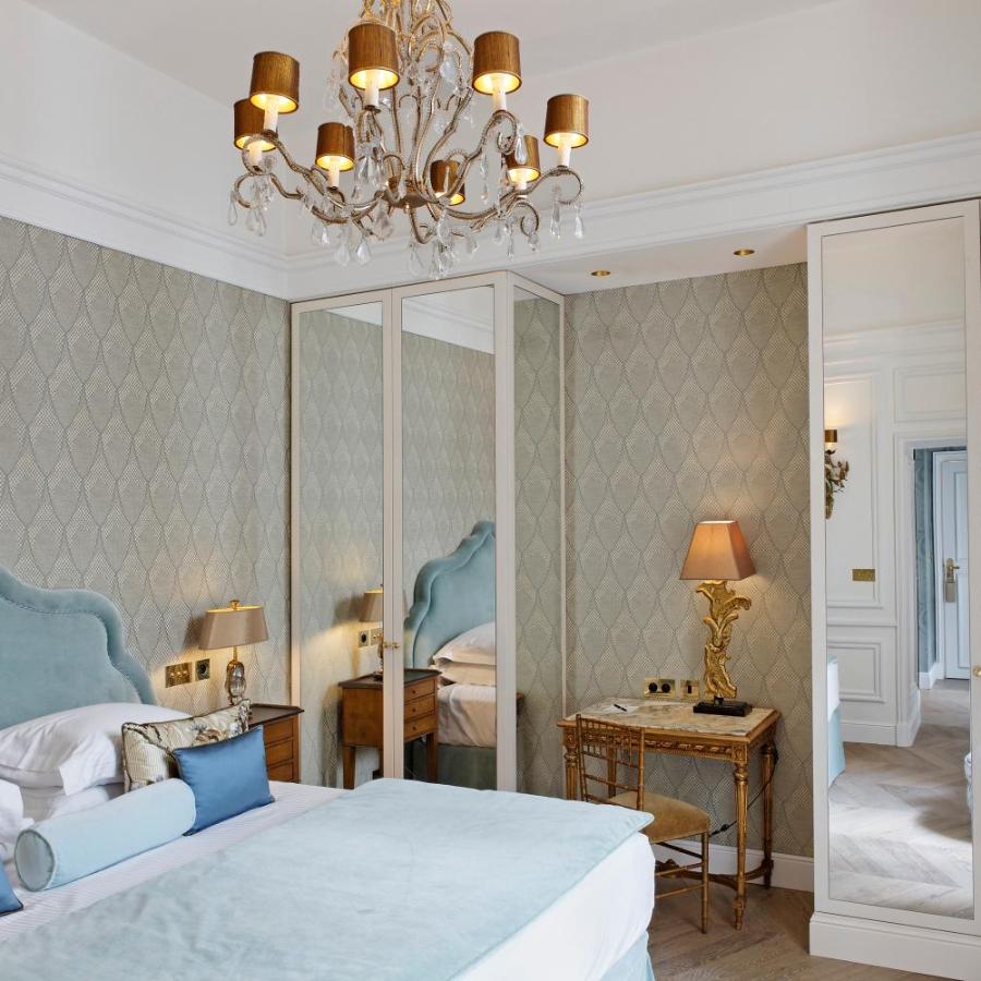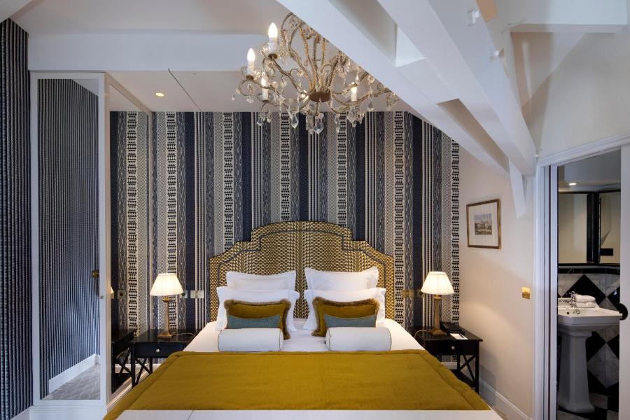 The 48 rooms and suites welcome you in a cozy ambiance, each telling its own unique story. You’ll find luxurious fabrics, carefully chosen patterned wallpapers, aged wood paneling, exposed beam ceilings, and headboards adorned with Pierre Frey textiles. Some rooms even allow you to enjoy a touch of greenery with a private terrace overlooking the garden, a rare privilege in the capital.