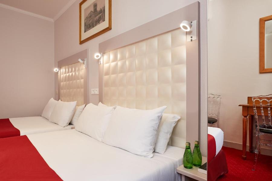 L’hôtel compte 44 chambres réparties sur six étages, desservis par un ascenseur. Certaines chambres ont été pensées pour les personnes à mobilité réduite, ce qui facilite l’accueil de tous les profils de voyageurs. Chaque chambre présente un style sobre, classique, avec une attention portée à la fonctionnalité et au confort. L’ensemble crée une atmosphère douce et reposante, appréciée après une journée dans l’effervescence parisienne.