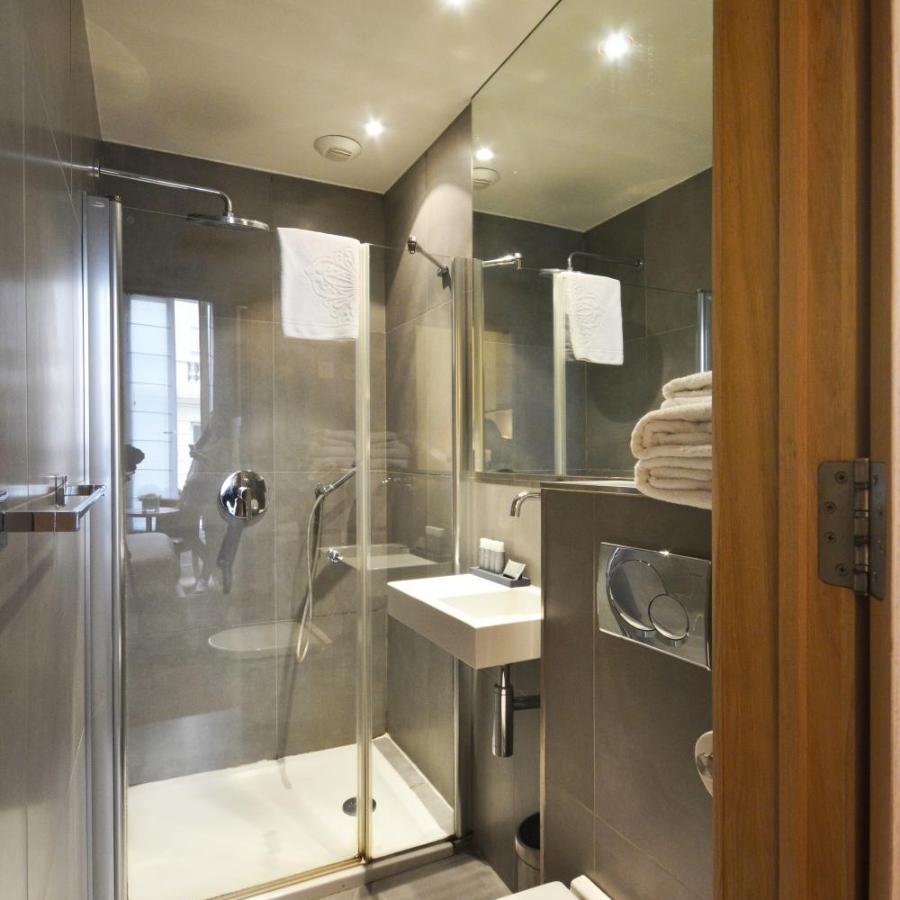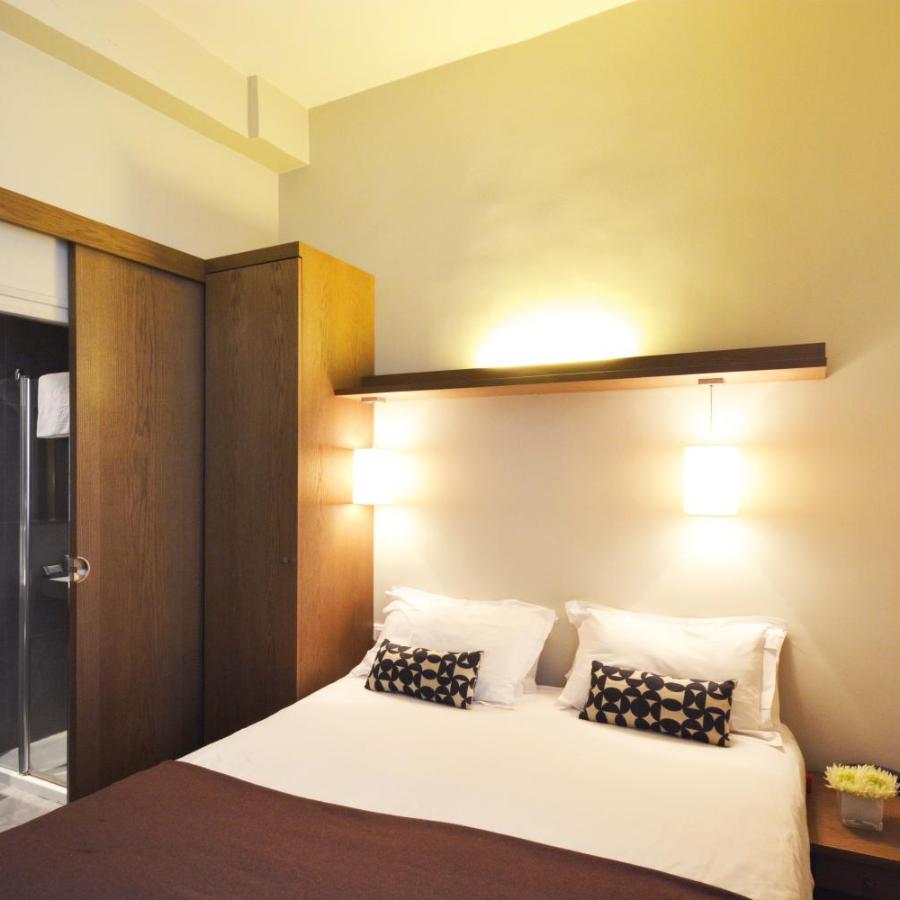 Certaines chambres disposent d’un petit coin salon, permettant de prolonger agréablement le moment de détente. L’insonorisation soignée contribue à créer une bulle de tranquillité, à l’abri de l’animation urbaine. Les chambres sont desservies par un ascenseur à l’ancienne, fidèle au caractère parisien de l’ensemble.