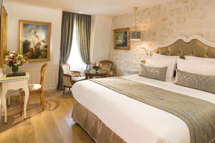 L'hotel si distingue per il suo stile deciso, che attinge al vocabolario estetico del Grand Siècle integrando un comfort moderno impeccabile. Il luogo conserva lo spirito della rive gauche letteraria, senza chiudersi nella nostalgia. Antichi pannelli in legno, tessuti preziosi, mobili di stile, colori ispirati alla storia di Francia: tutto contribuisce a dare agli spazi un'identità forte, curata, senza ostentazione.