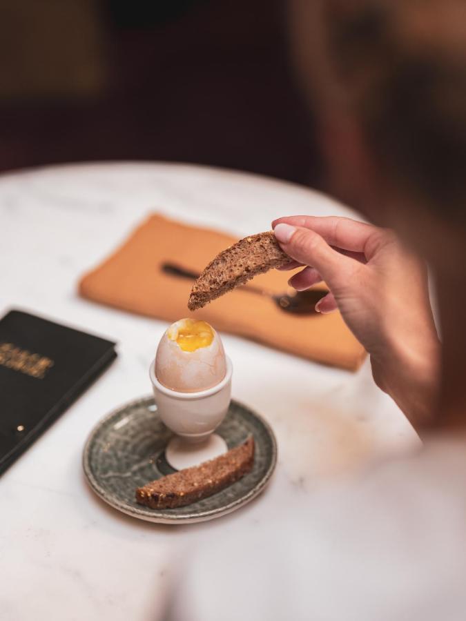 La domenica, il brunch diventa un appuntamento a parte. Un ricco buffet propone frutti di mare, uova al tartufo, salumi, dolci di pasticceria e bevande raffinate. Ci si accomoda sotto la vetrata, cullati da una luce morbida, in un'atmosfera favorevole tanto al relax quanto alla conversazione. Non si tratta solo di nutrirsi, ma di vivere un momento speciale.