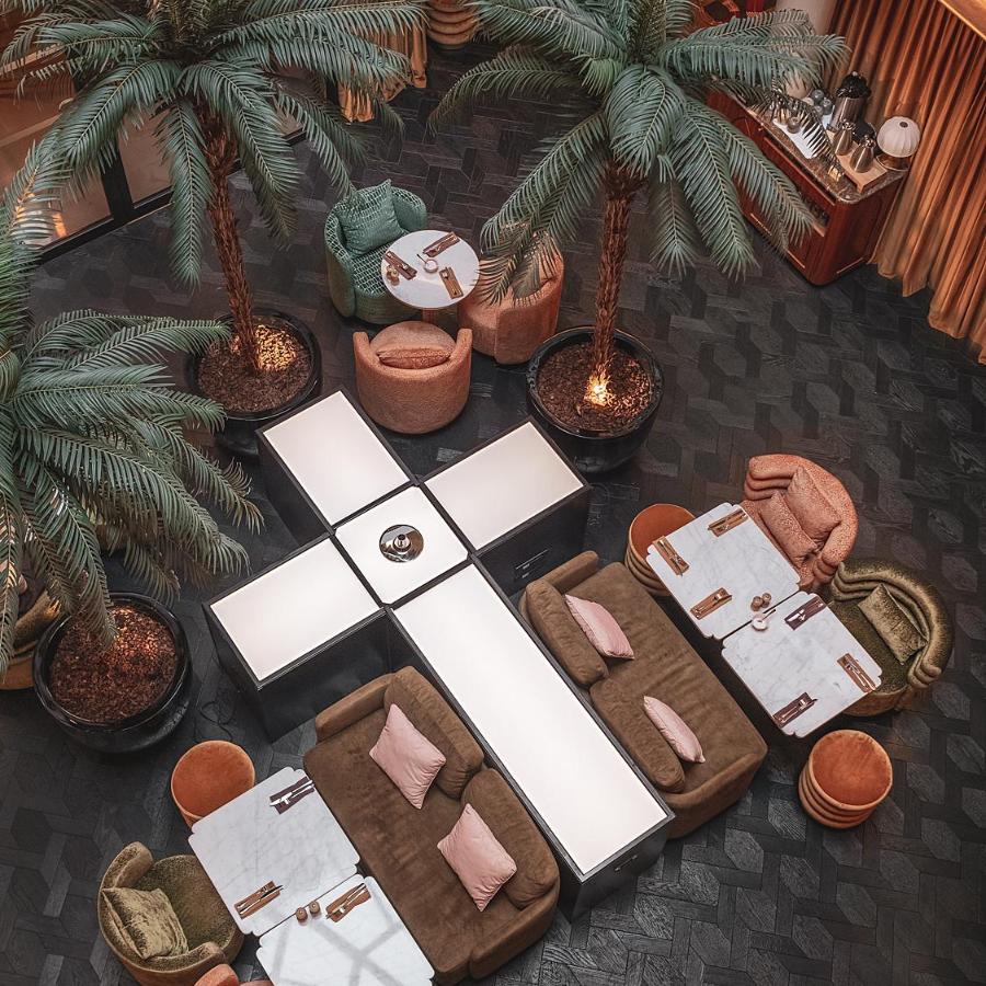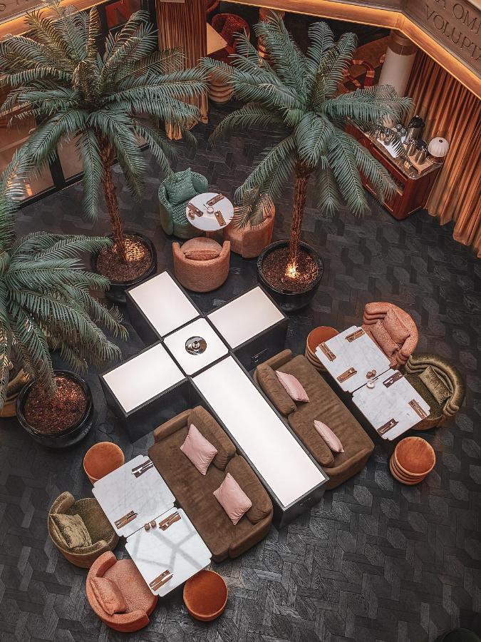 Non appena si varca la porta, un tappeto con motivo a serpente vi guida in una hall attenuata, avvolgente, simile a un passaggio iniziatico. Il marmo, l'ottone, le tonalità scure e i sussurri discreti creano un'atmosfera unica. Sotto i vostri passi, il passato si lascia intuire, ma non si rivela mai del tutto. L'ambiguità fa parte dell'esperienza: tra ascesi e voluttà, l'ambiente coltiva il mistero.