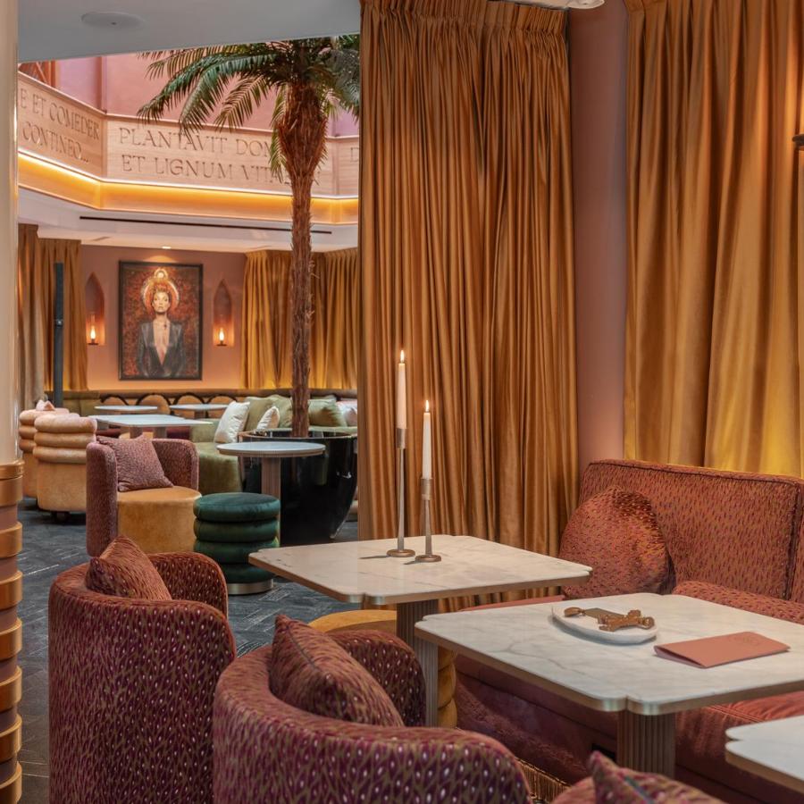 L'architettura interna non cerca di sedurre al primo sguardo, ma di intrigare, di far nascere un'emozione lenta e duratura. Il legno verniciato dialoga con il velluto, i motivi religiosi reinterpretati si mescolano a richiami sensuali, e tutto sembra essere stato progettato per confondere i riferimenti abituali. Siete in un hotel che coltiva la sfumatura, l'ironia e la poesia del dettaglio.