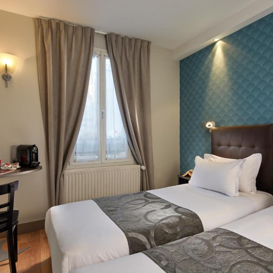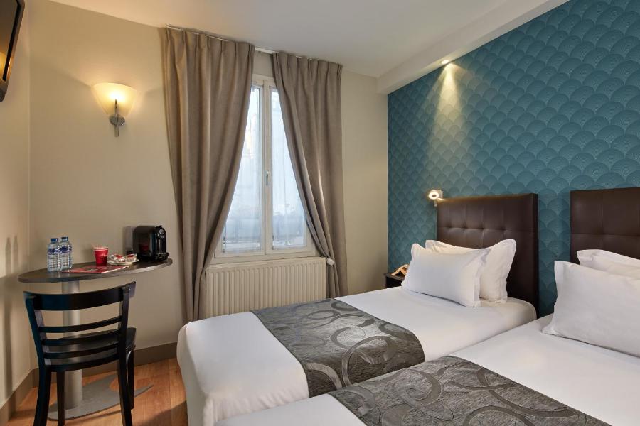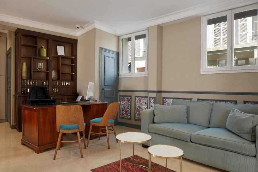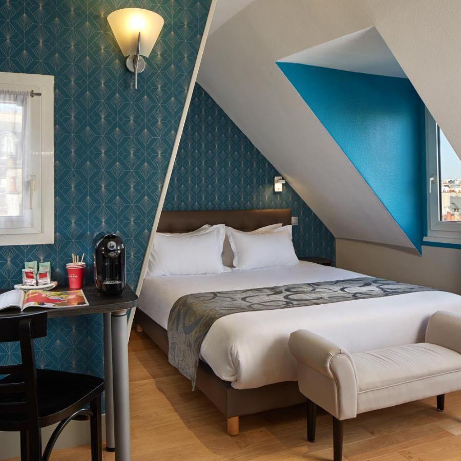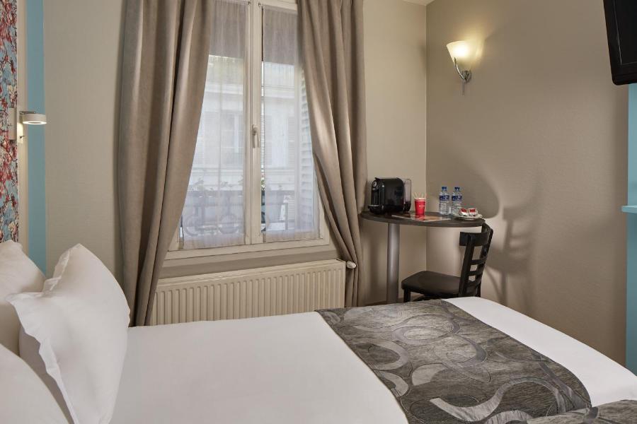 L'hotel dispone di trentadue camere distribuite su più piani, servite da un ascensore, ad eccezione di due camere situate all'ultimo piano. Queste camere, mansardate e affacciate sui tetti di Parigi, affascinano per il loro carattere unico. Tutte sono insonorizzate, dotate di doppi vetri e alcune si affacciano su un patio alberato, al riparo dal trambusto cittadino.