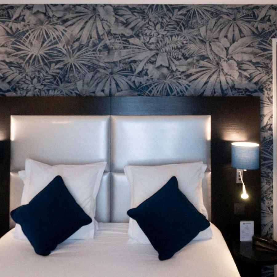 Le 49 camere combinano estetica e funzionalità. Ognuna presenta una decorazione personalizzata con tocchi sottili, inclusi motivi murali che danno un carattere unico a ciascun ambiente. Gli spazi sono generosi per Parigi: la camera doppia supera i 20 m², mentre le camere triple possono raggiungere i 30-38 m², rendendole una soluzione confortevole per soggiorni in famiglia o con più persone.
