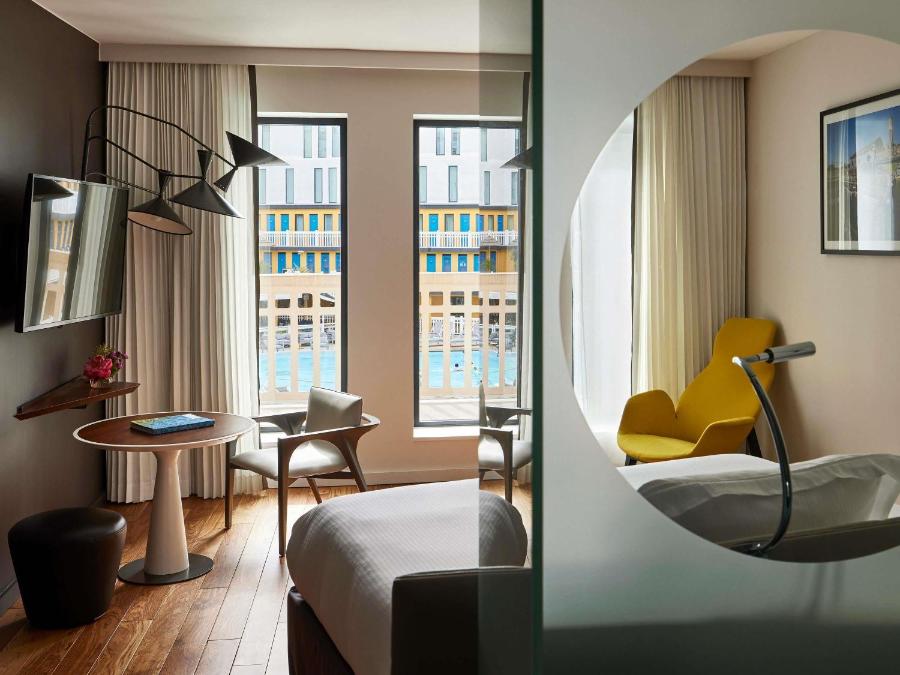 Scoprite un edificio le cui linee Art déco evocano gli anni '30, epoca della sua inaugurazione, e la cui anima è stata pazientemente restaurata dopo decenni di oblio. La piscina, un tempo leggendaria, poi teatro della scena underground parigina, vi accoglie di nuovo, circondata da camere dal design contemporaneo. Questo dialogo tra passato e presente conferisce al luogo un carattere singolare, quasi confidenziale.