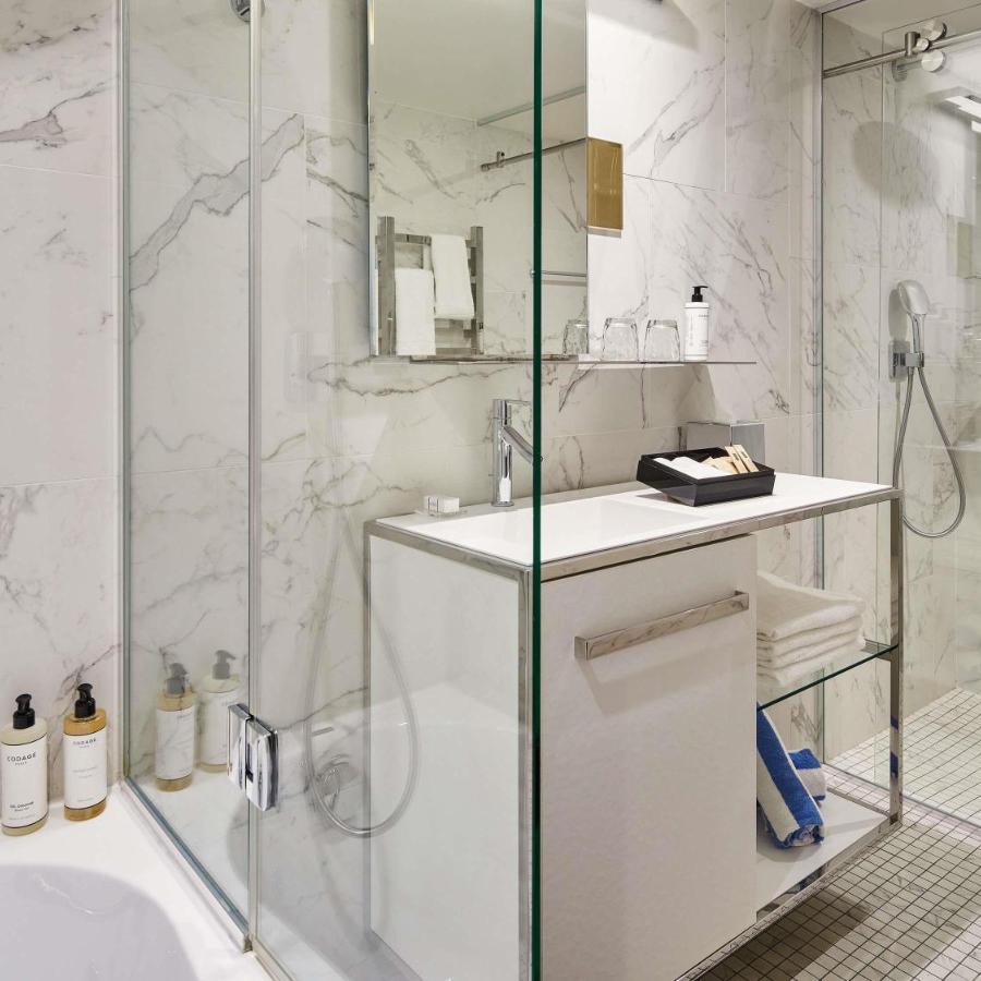 Scendendo qualche gradino, accederete a uno spazio interamente dedicato al benessere. La spa Codage vi apre le porte di un universo rilassante, tra piscina coperta riscaldata, hammam avvolgente, sauna rilassante e sala fitness. I trattamenti vengono realizzati su misura, con essenze legnose che richiamano il passato dell’edificio e prolungano l’esperienza sensoriale in una perfetta continuità.